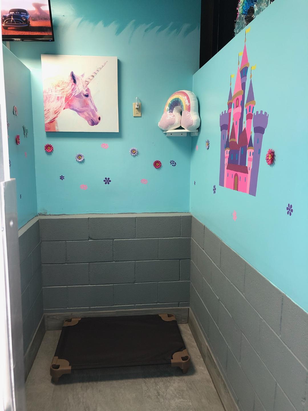 Our suites provides a comfortable environment for your pet to board in without being confined to a kennel. Each suite contains a cot for your dog to sleep on and a television for noise comfort. Each suite is also decorated with a different theme!